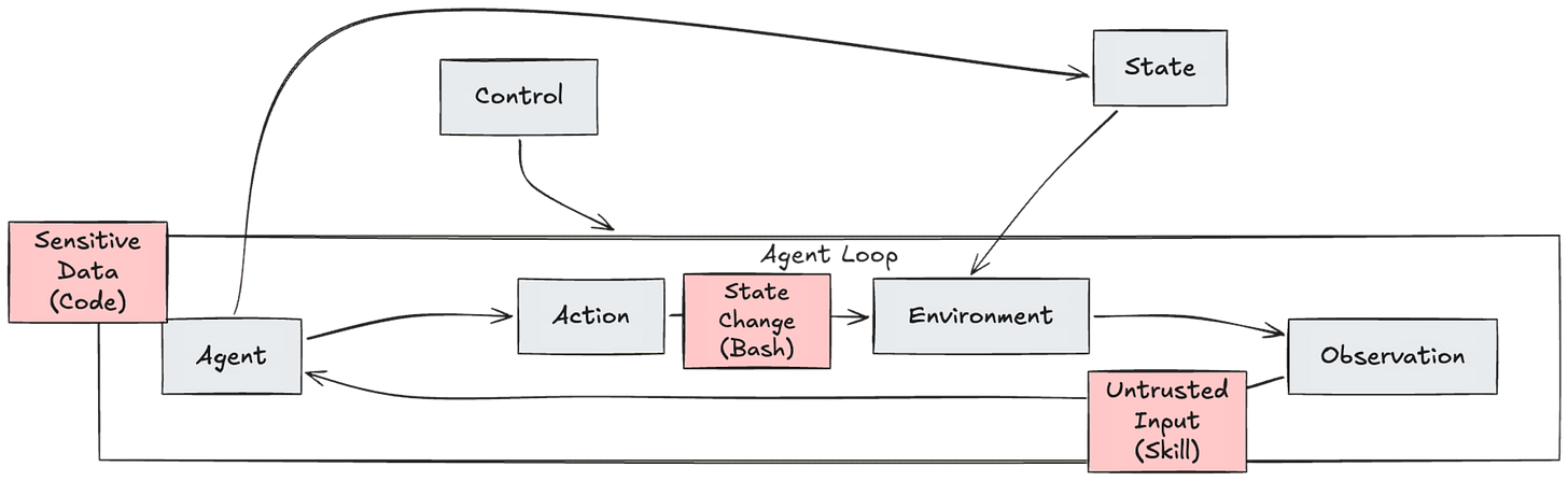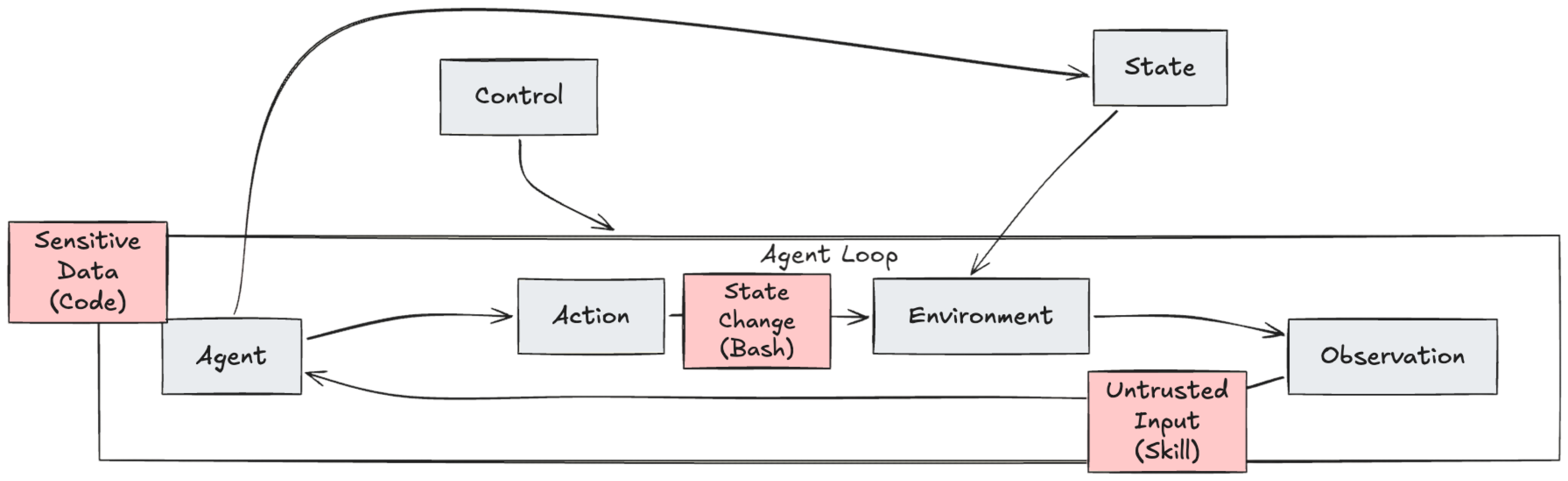 observation.Sensitive data like private repos or docs is in the agent’s context or retrieved from memory.