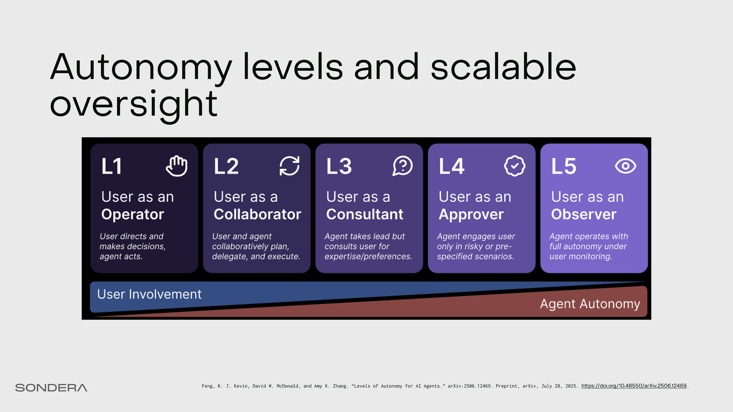 The spectrum of autonomy is at the heart of agent design choice. Think of it as a slider. As we turn this slider from left (L1) to right (L5), we increase the agent’s utility and power...but we also dramatically reduce oversight.