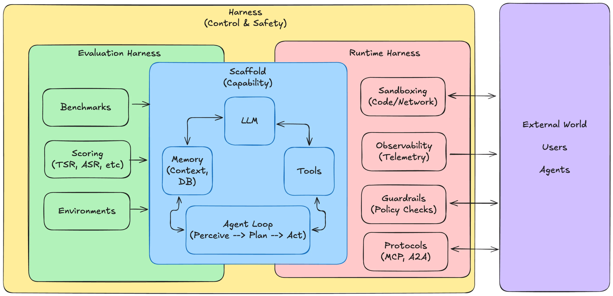 The Harness: This is the control layer where we detect and contain attacks. Vulnerabilities live in the scaffold; safety and control live in the harness.