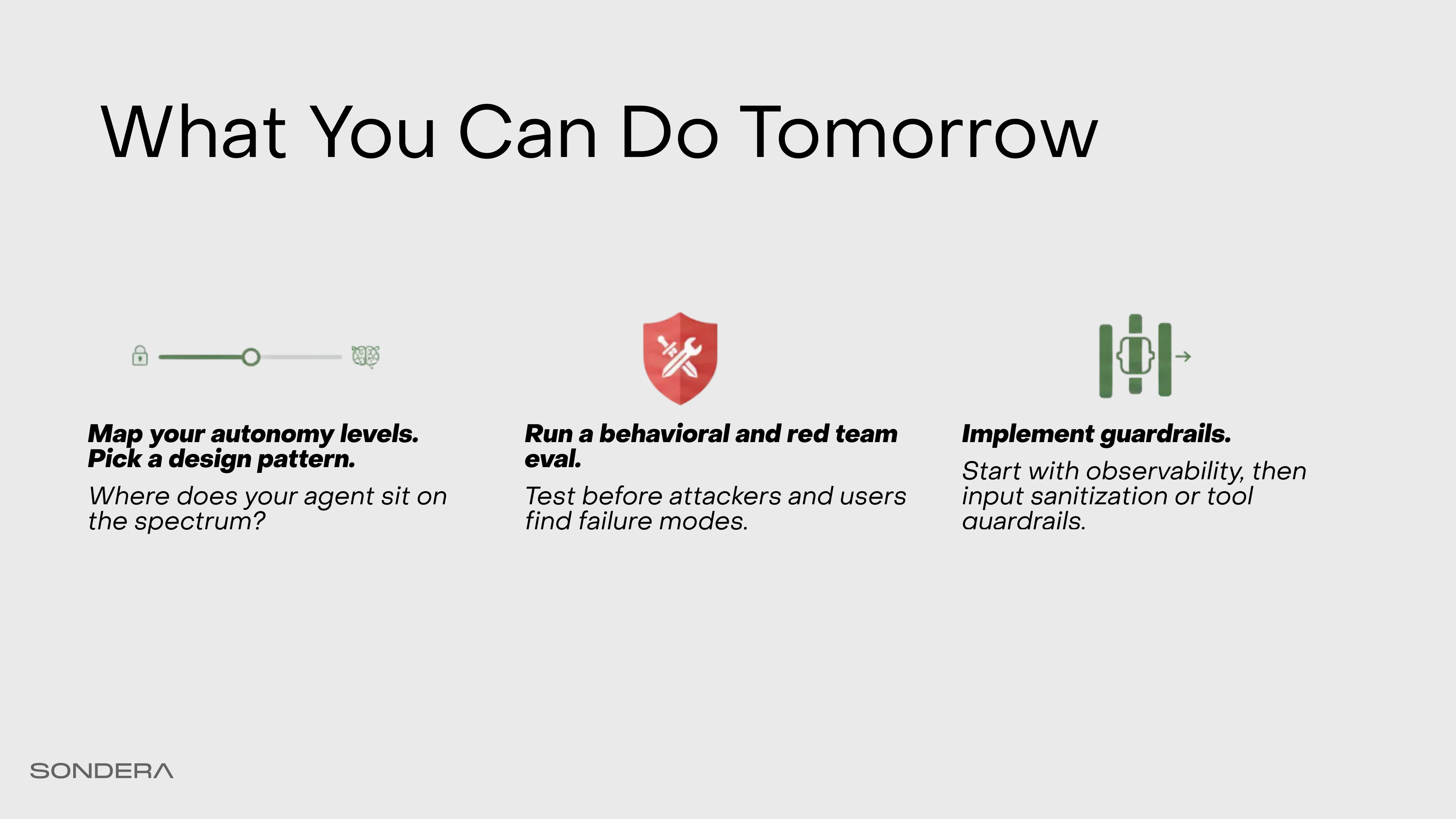 3. Deploy a guardrail. Start with observability. Then input sanitization. Then tool monitoring. Begin the work of control.