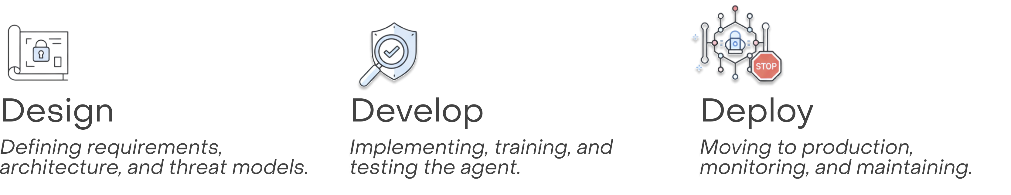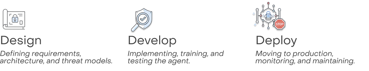 We can engineer trustworthy agents by integrating security, safety, and reliability considerations throughout the Agent Development Lifecycle (ADL): Design, Develop, and Deploy.